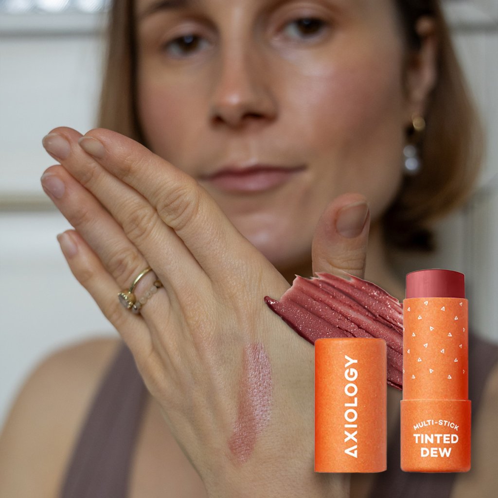 Axiology Rozjasňující tónovací a hydratační rtěnka je balena v kompostovatelném papírovém obalu a tvořena jen z 10 pečlivě vybraných, přírodních ingrediencí. Kokosový, avokádový a hroznový olej spolu s bambuckým máslem vyživují, regenerují a zanechávají rty i pokožku hebké a hydratované.